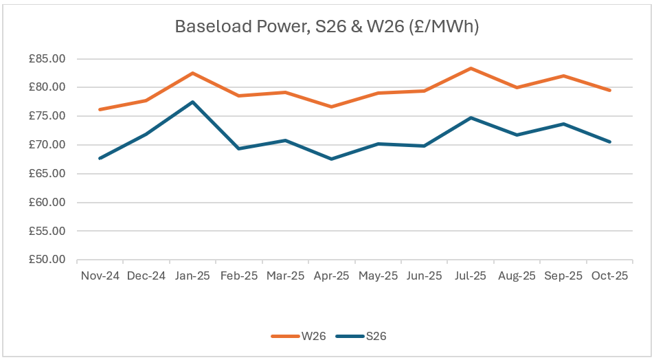 Season ahead power markets saw some uplift early October as a result of French Nuclear strikes and Russian’s attack on Ukraine, prompting increased gas demand. Though, overall bearish conditions continued throughout and season ahead contracts closed lower than September.