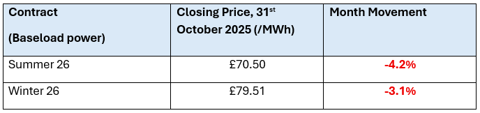 Gas and power markets fall further during October, supported by a stable supply and demand outlook as we enter the winter season.